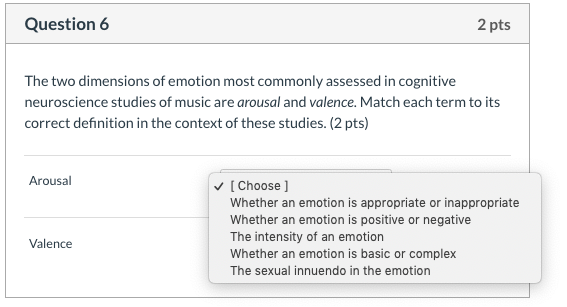Question 6 2 Pts The Two Dimensions Of Emotion Most Chegg Com
