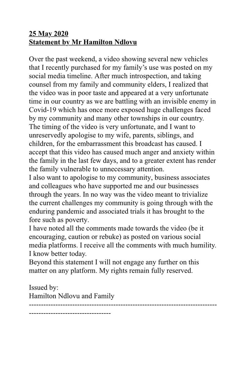 He is married wife is Felicia Ndlovu. Further investigation was set to take place but as Judge Sutherland put it Hamilton Ndlovu essentially did SARS work for them. He bought them a car each.